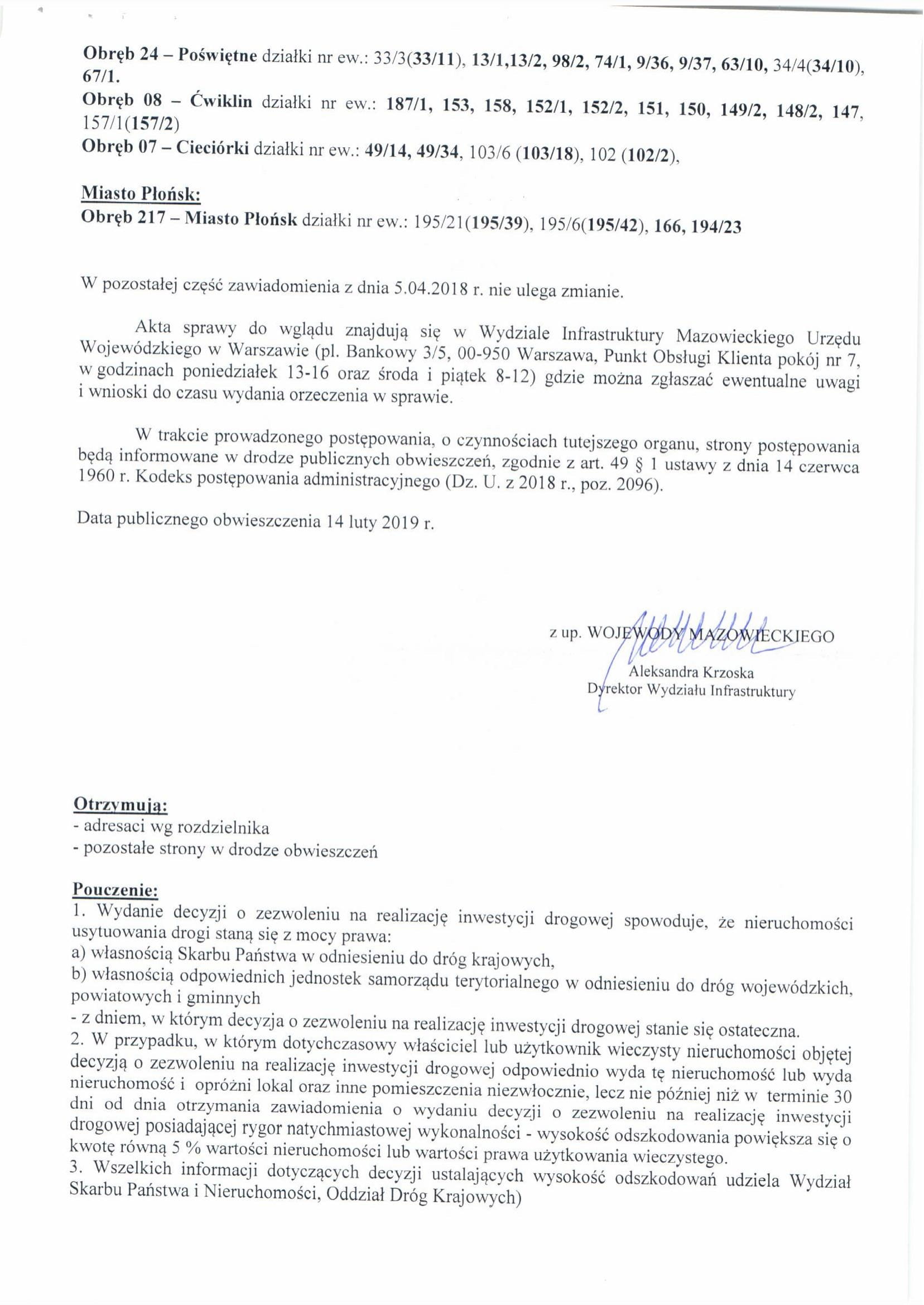 Zawiadomienie Wojewody Mazowieckiego ws. budowy drogi S7 Olsztynek (S51) - Płońsk (S10) - odc. Pieńki - Płońsk Featured