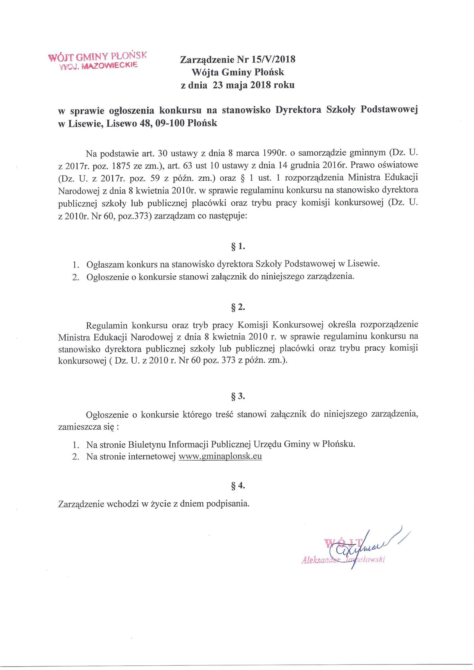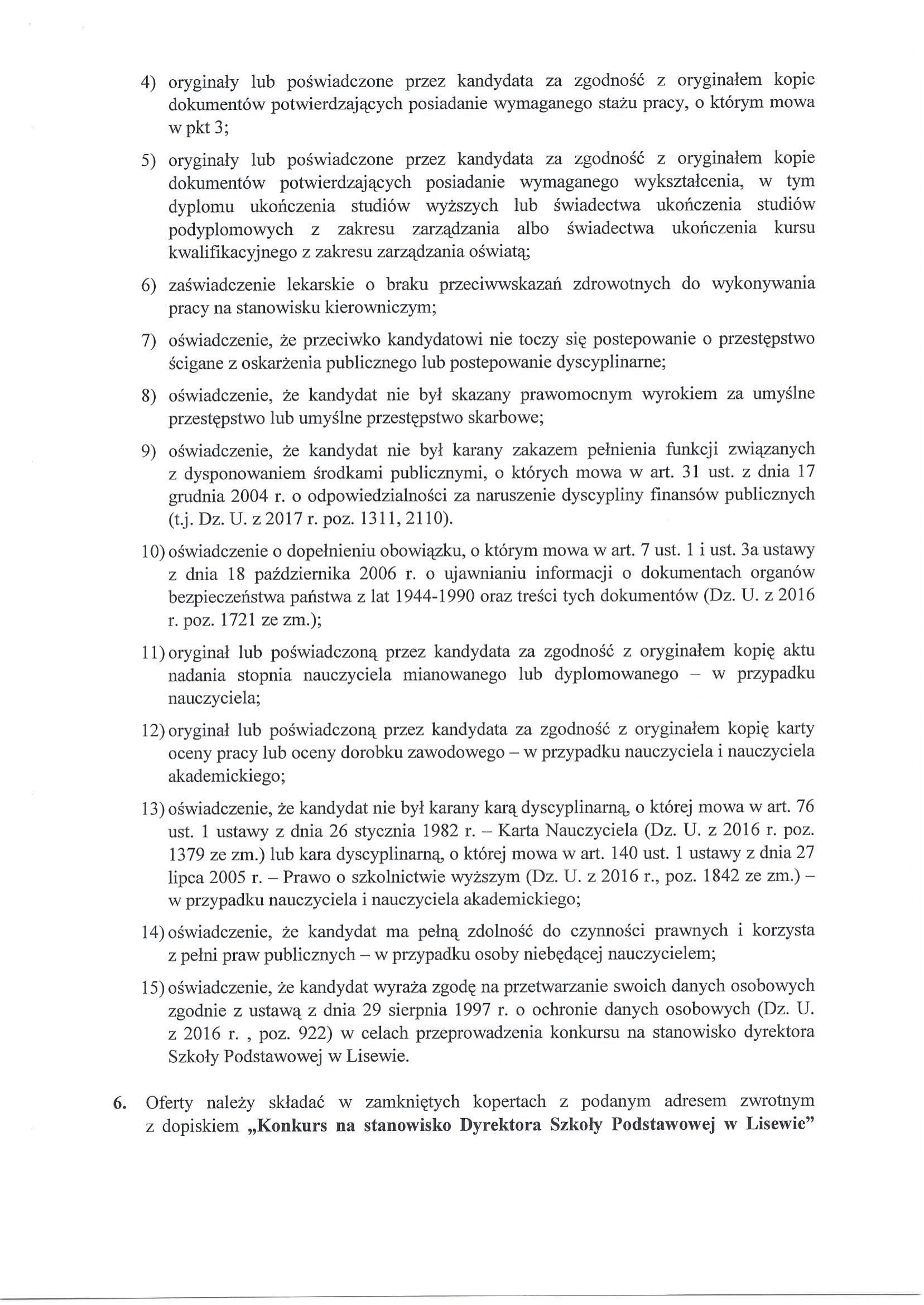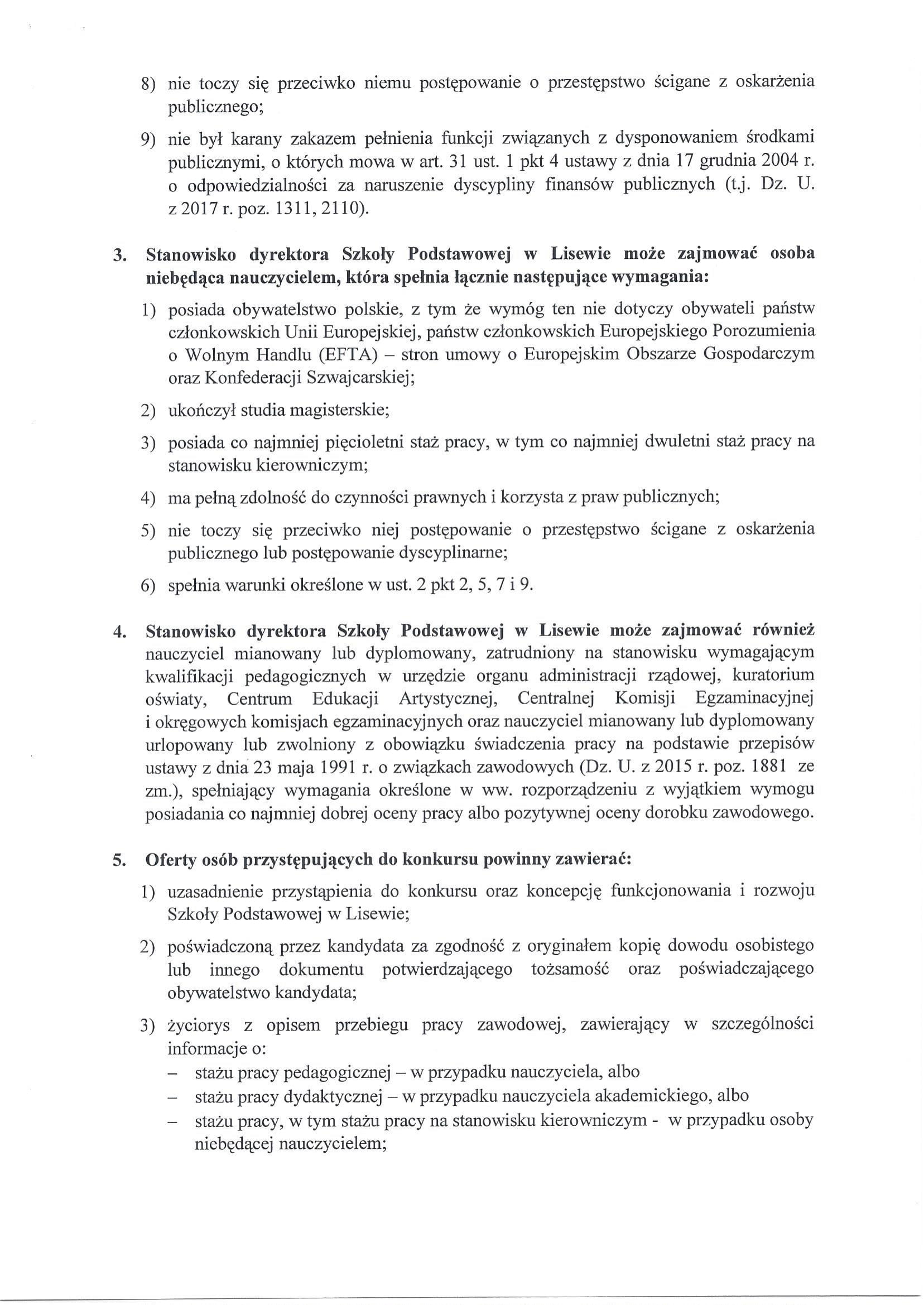 Ogłoszenie o konkursie na stanowisko Dyrektora Szkoły Podstawowej w Lisewie (zarządzenie o unieważnieniu konkursu) Featured