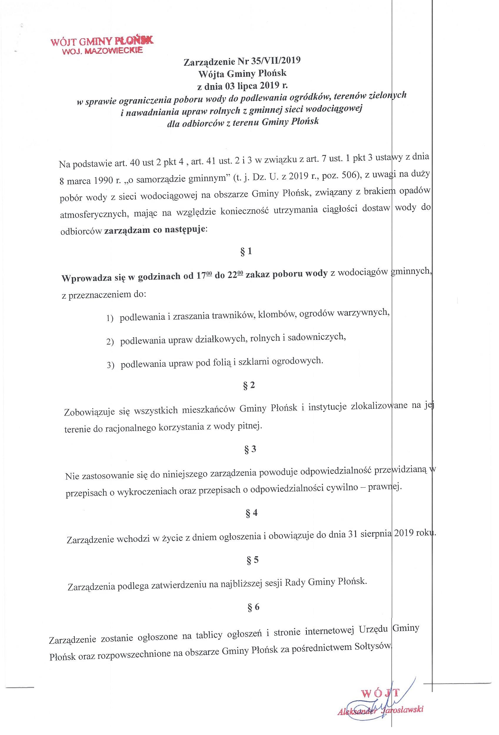 Zarządzenie Nr 35/VII/2019 Wójta Gminy Płońsk