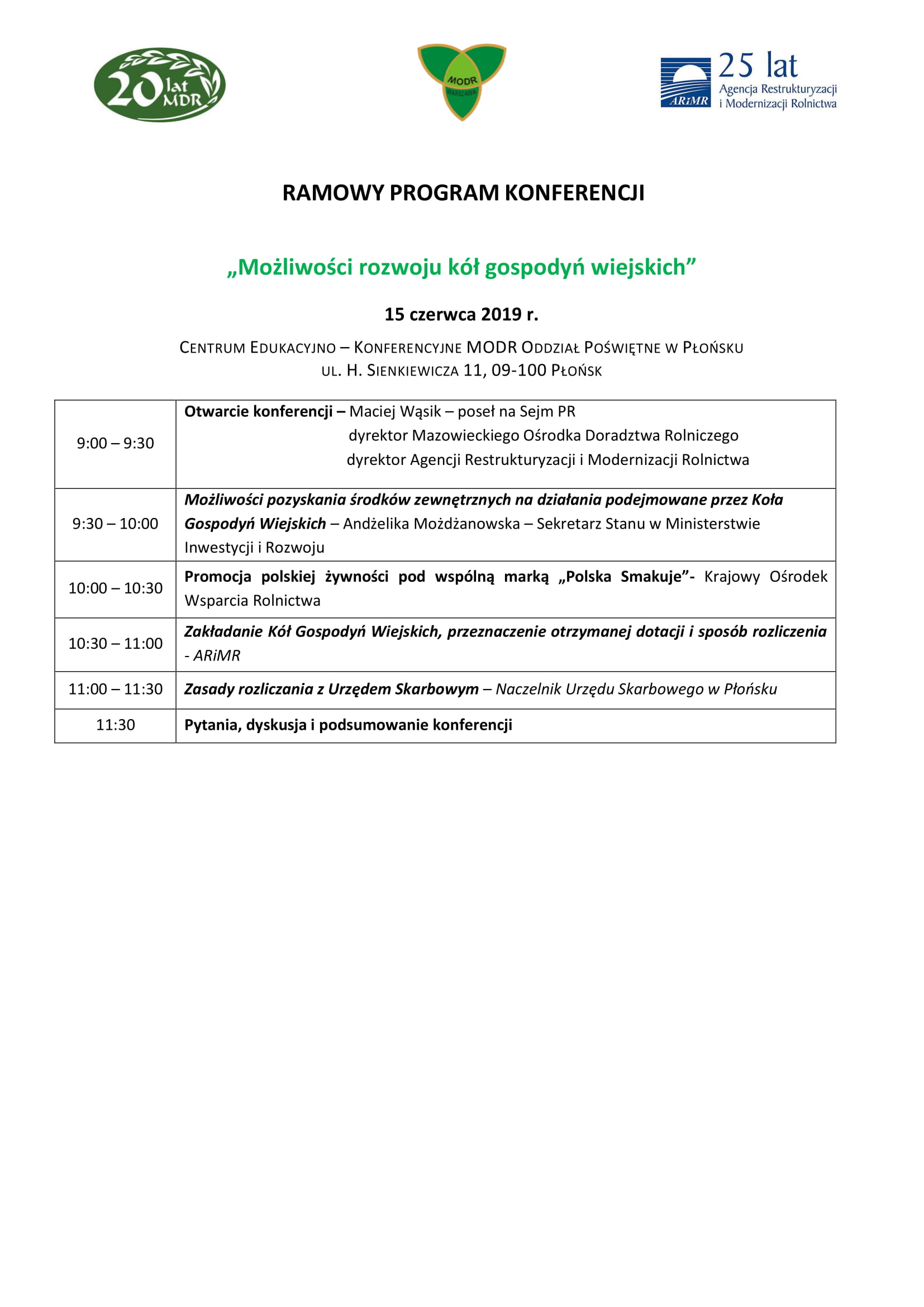 Program konferencji Możliwości rozwoju dla Kół Gospodyń Wiejskich 2-1