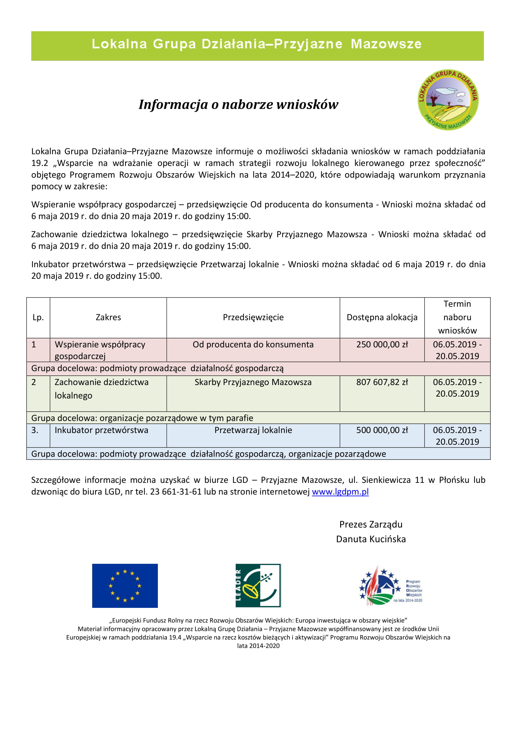 Wnioski należy składać w Urzędzie Gminy, pok. nr 7 w nieprzekraczalnym terminie do dnia 10.05.2019r.