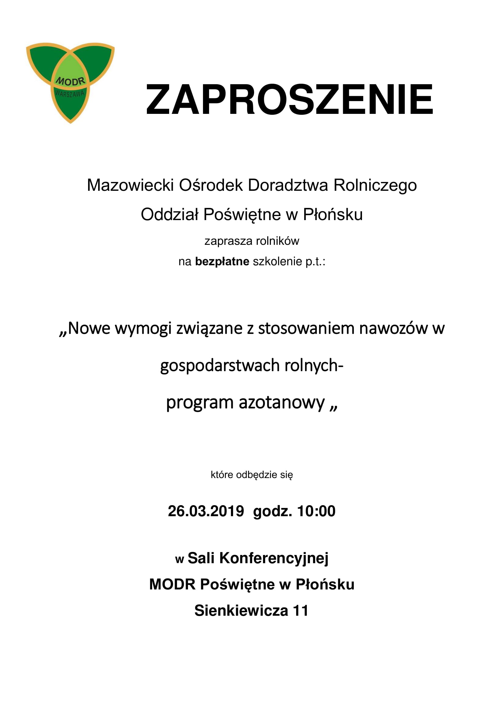 MODR Poświętne w Płońsku zaprasza na bezpłatne szkolenie