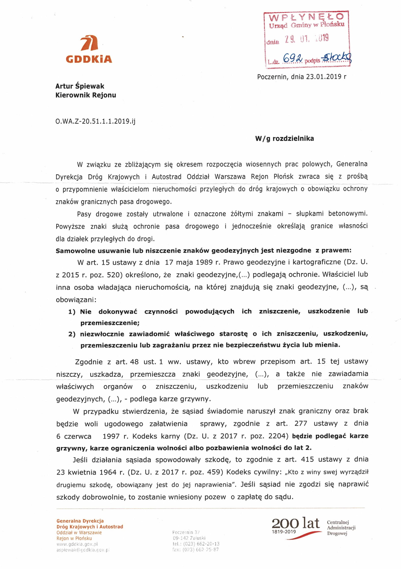 Informacja dotyczy obowiązku ochrony znaków granicznych pasa drogowego.