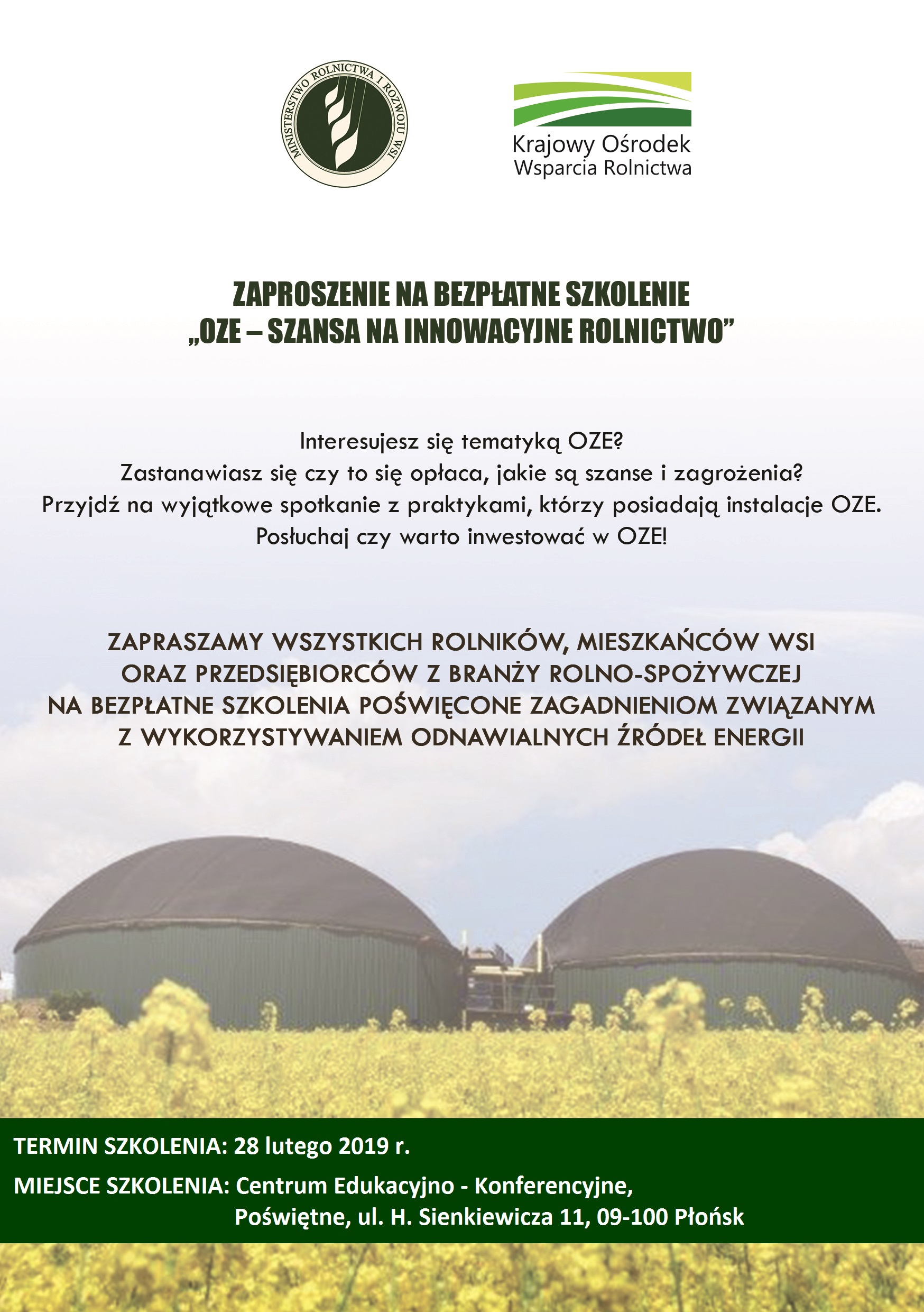 Zaproszenie na bezpłatne szkolenie OZE