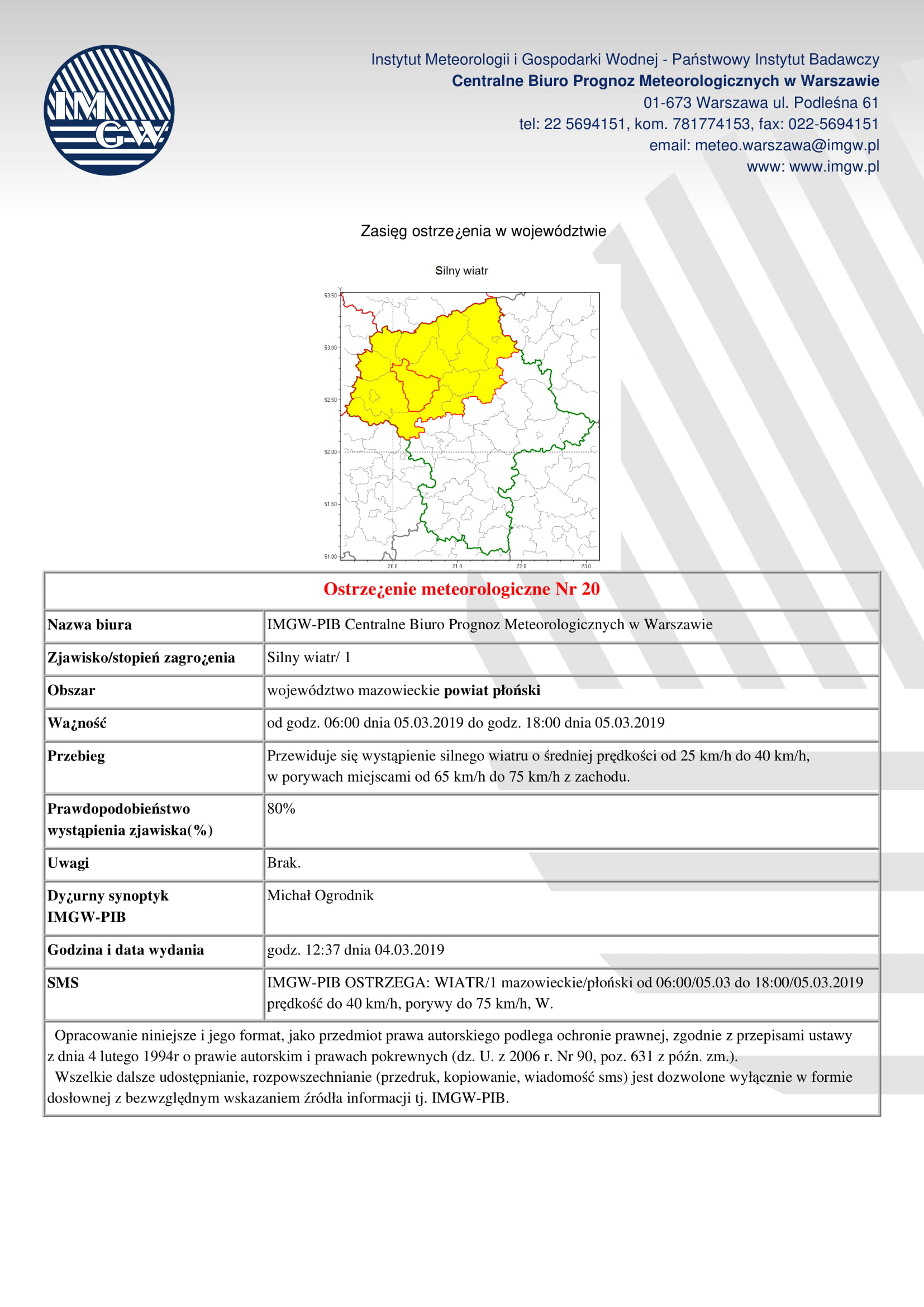Uwaga wietrzna aura na terenie Gminy Płońsk! Ostrzeżenie wydało IMGW