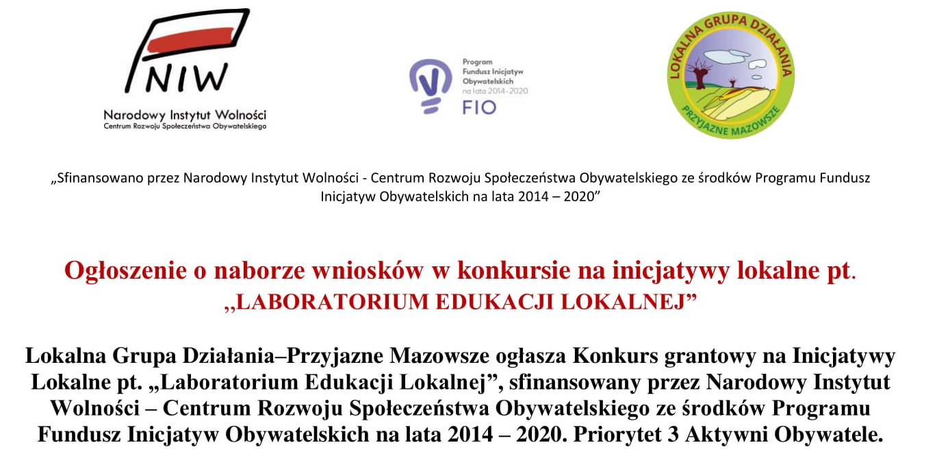 Ogłoszenie o naborze wniosków w konkursie na inicjatywy lokalne pt. „LABORATORIUM EDUKACJI LOKALNEJ”