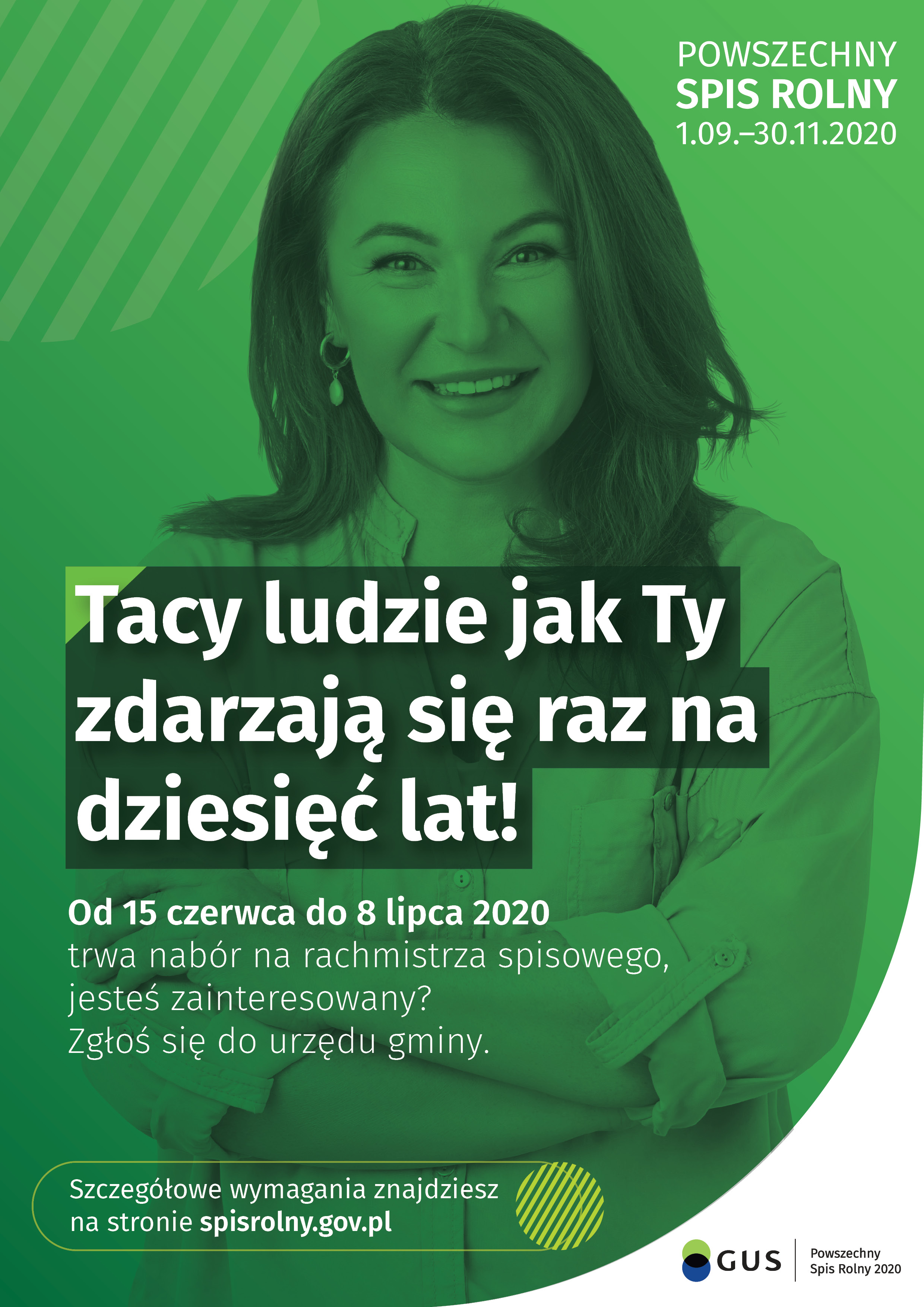 Urząd Gminy w Płońsku informuje że od 15 czerwca 2020 r. do 08 lipca 2020r. trwa nabór kandydatów na rachmistrzów do przeprowadzenia Powszechnego Spisu Rolnego na terenie Gminy Płońsk.