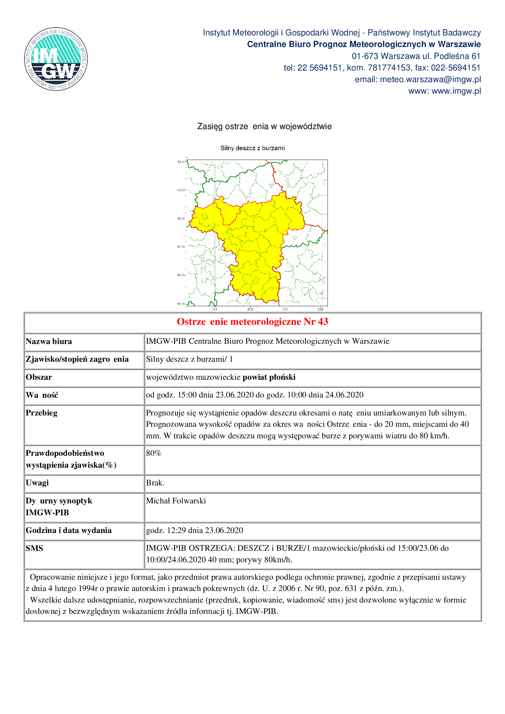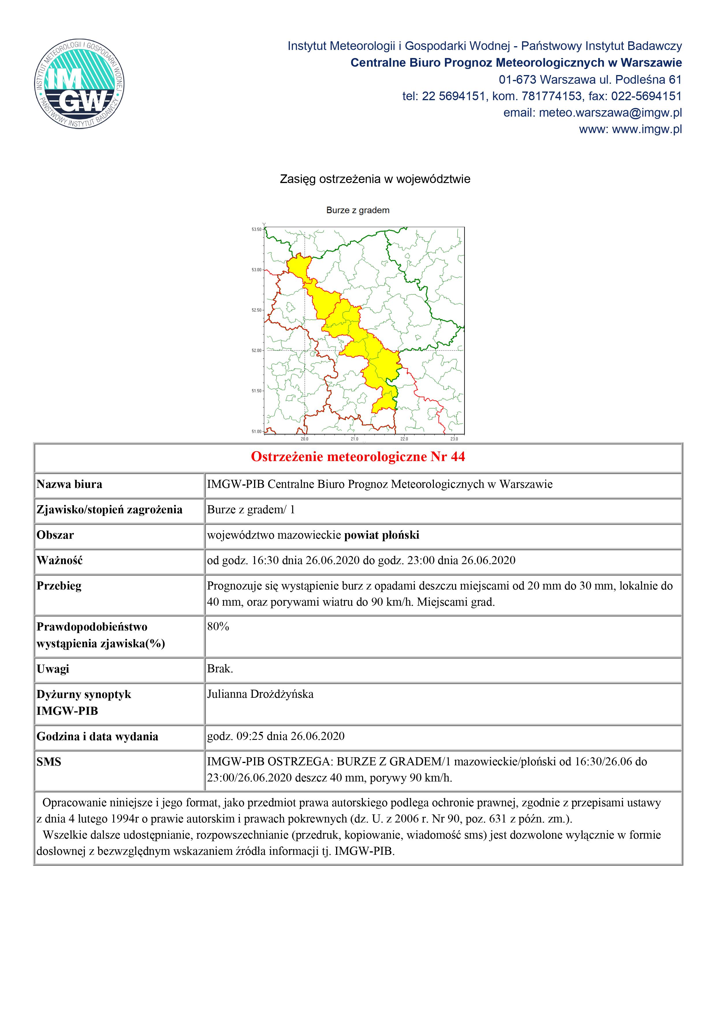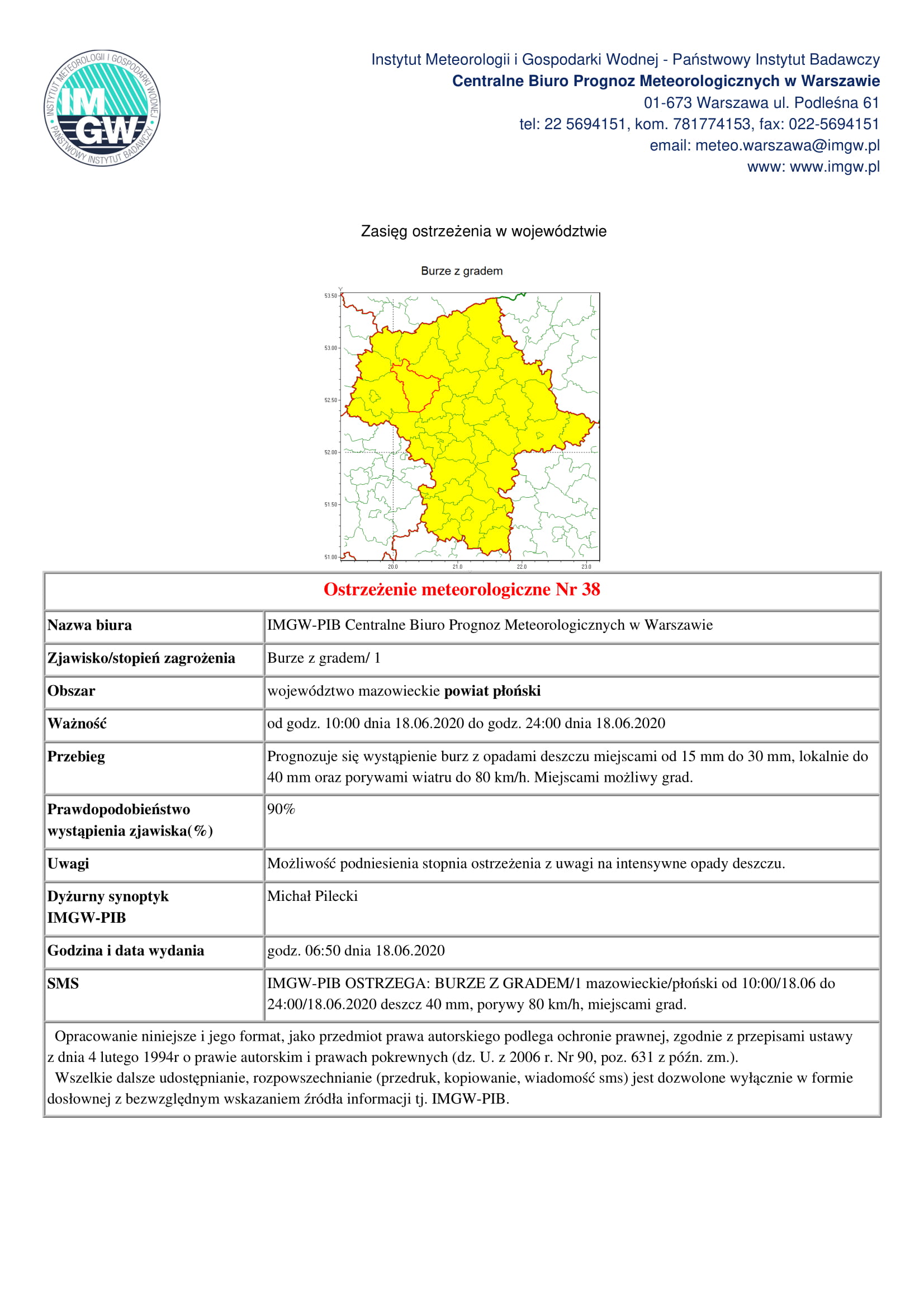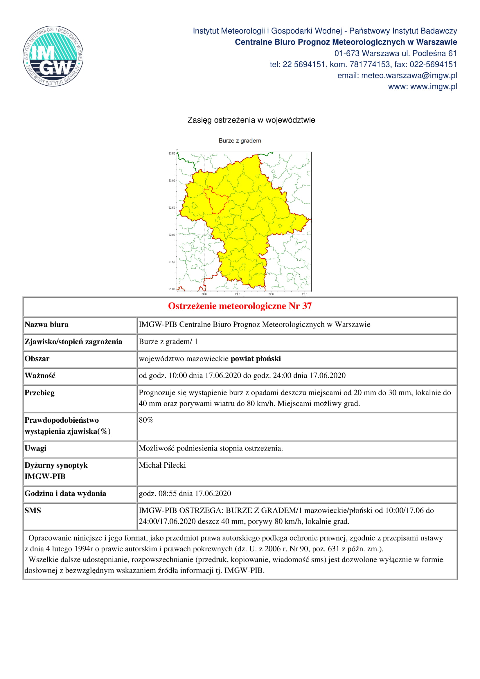IMGW wydało ostrzeżenie meteorologiczne, UWAGA BURZE Z GRADEM ,informacje poniżej:
