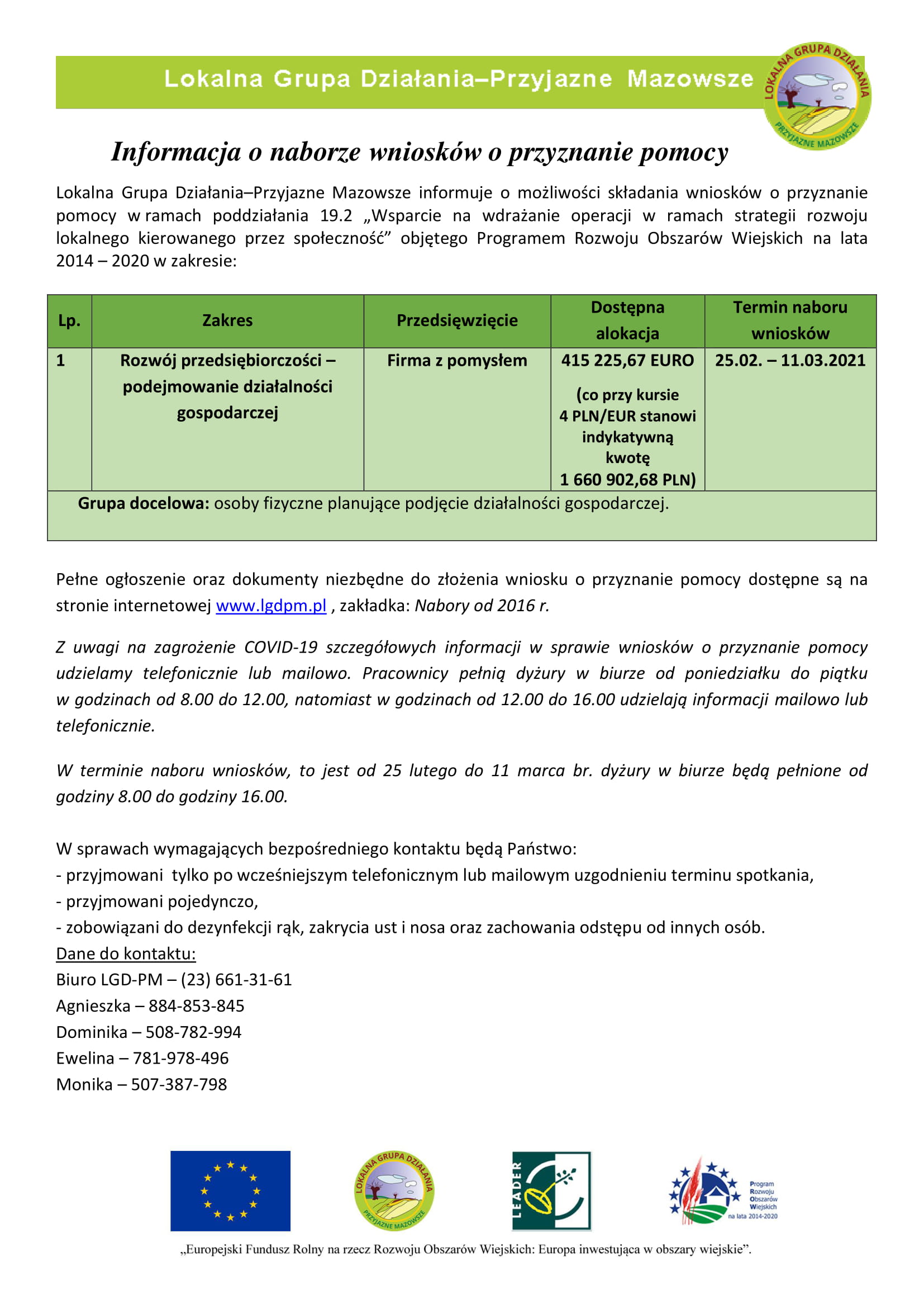 KOMUNIKAT WÓJTA GMINY PŁOŃSK Z DNIA 15.02.2021 ROKU